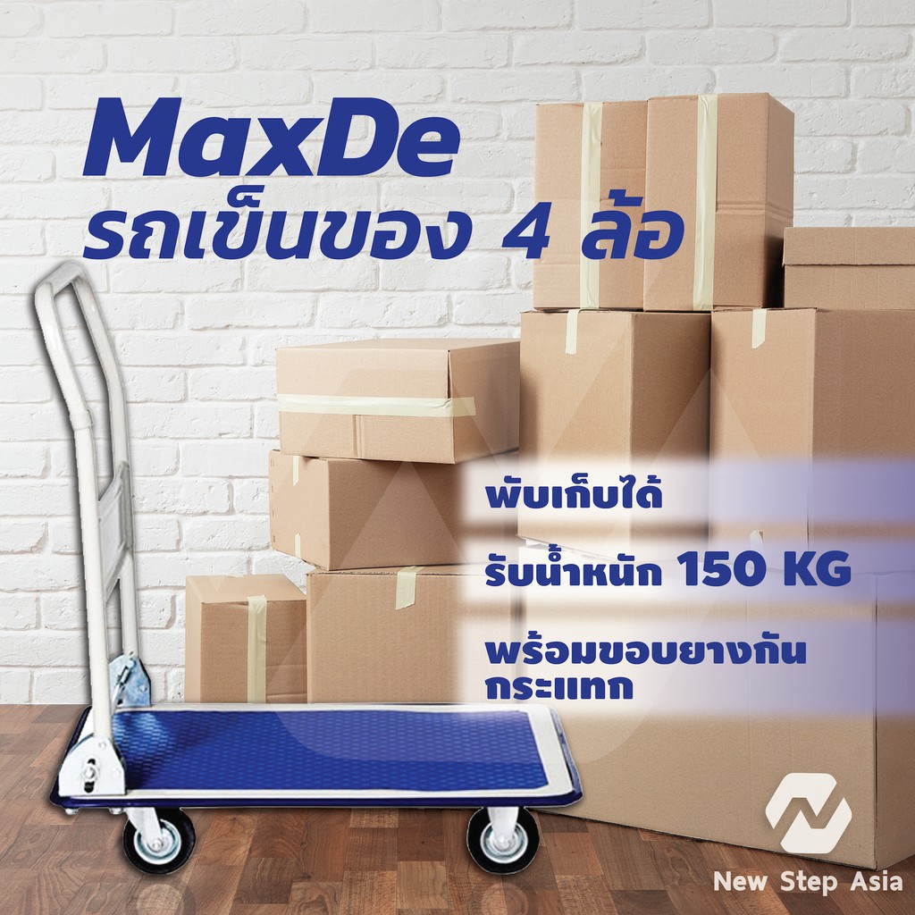 MaxDe รถเข็นของ 4 ล้อ พื้นเหล็ก รับน้ำหนัก 150 kg พร้อมขอบยางกันกระแทกรอบคัน สั่งซื้อได้ที่ไหน